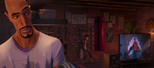 There were a lot of amazing voice actors within the movie and a lot of cameos. But one that probably caught your eye was Donald Glover on Aaron Davis’ (Uncle Aaron’s) Tv while Miles was punching the punching bag.